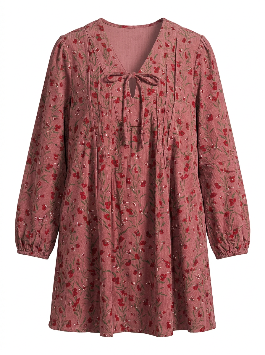 + V neckline with tying closure + Pin tuck detail on front and back + Long puff sleeves with elastic cuffs + Shift silhouette +...