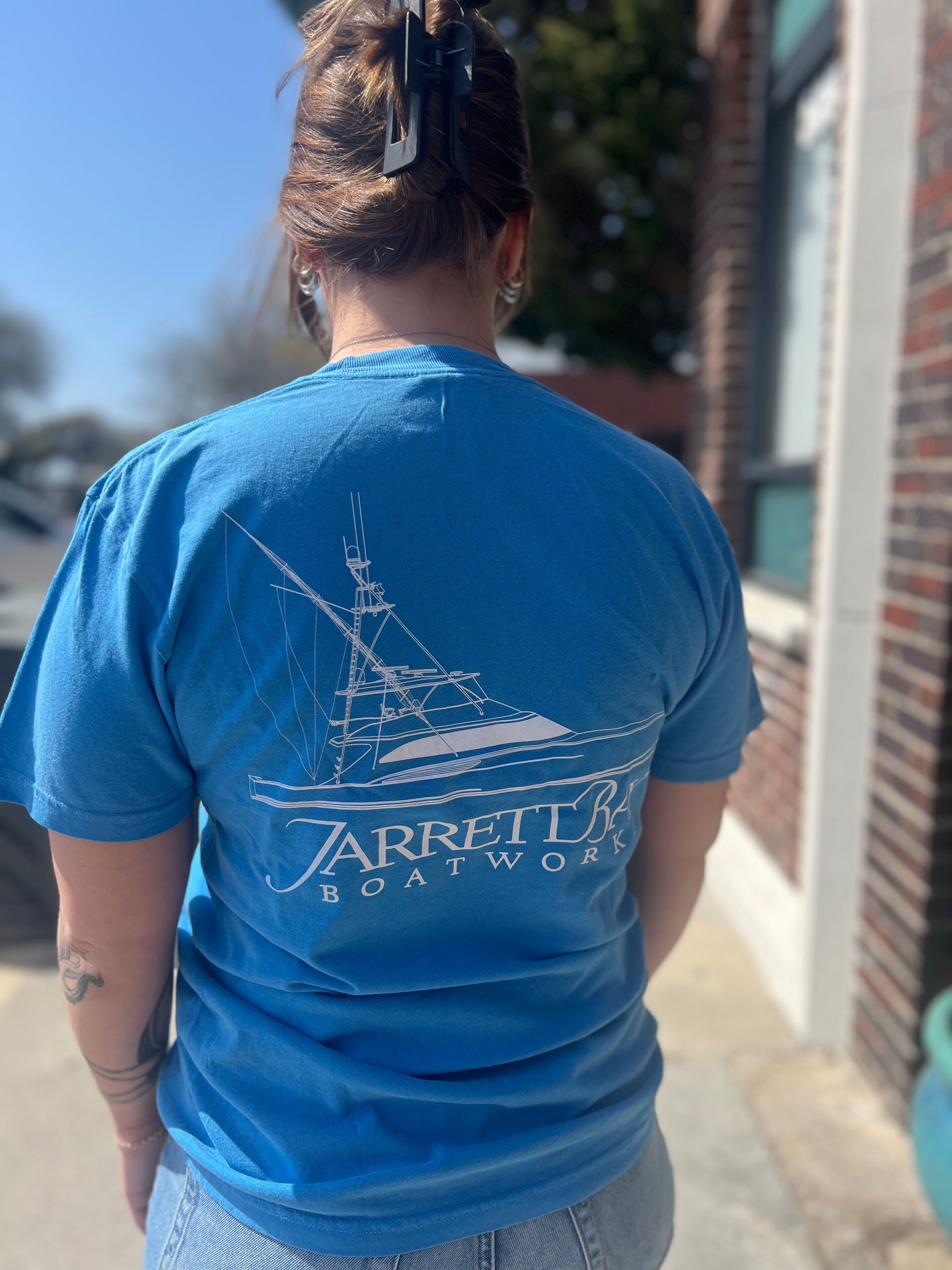 Our Jig design features the detail of our custom built hulls. Â Shirt details- Butter and Royal Caribbean Comfort Colors with pocket, White Jarrett Bay...